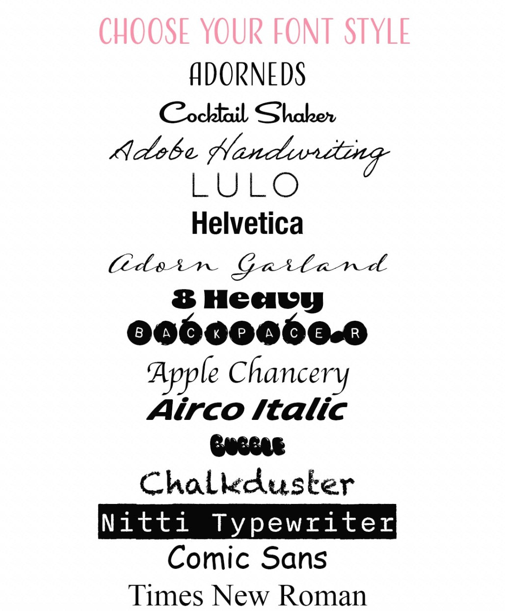 IF YOU WOULD LIKE SPECIFIC COLORS FOR YOUR NAME, PLEASE SPECIFY IN THE COMMENTS BOX AT CHECKOUT