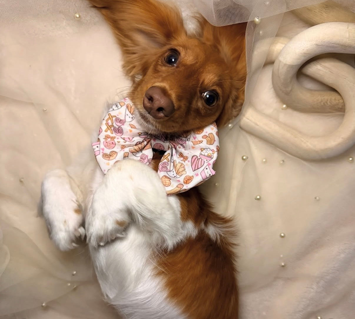 Bow Ties have Velcro on the back so they can be attached to a collar or harness